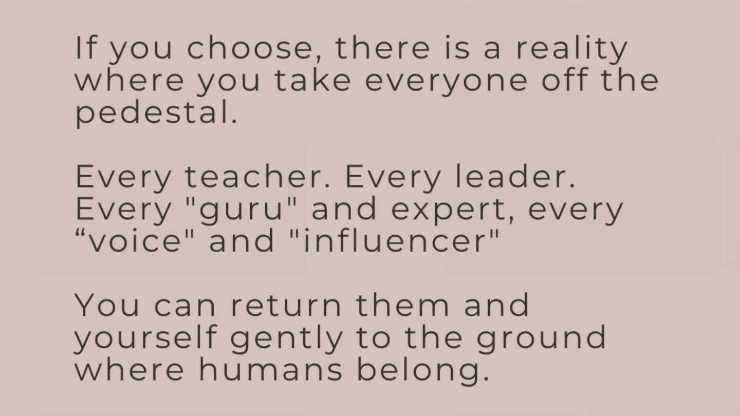 Feb 20, 2026If you choose, there is a reality where you take everyone off the pedestal. Every teacher. Every leader. Every "guru" and expert, every "voice" and "influencer." You can return them and yourself gently to the ground where humans belong.